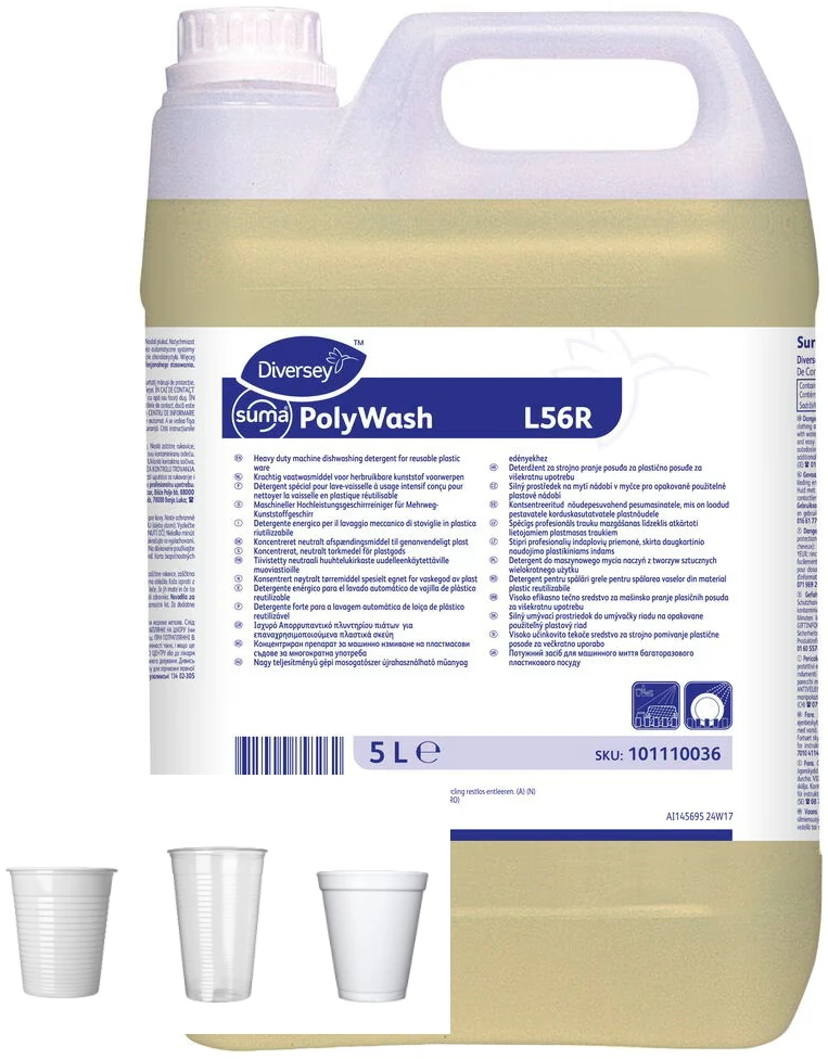 Ben je het zat om te zien hoe jouw herbruikbare plastic vaatwerk zijn glans verliest en onfrisse geurtjes vasthoudt? Maak kennis met Suma PolyWash L56R, de revolutionaire, hooggeconcentreerde reiniger speciaal ontworpen voor de machinale vaatwas van jouw kunststof servies.